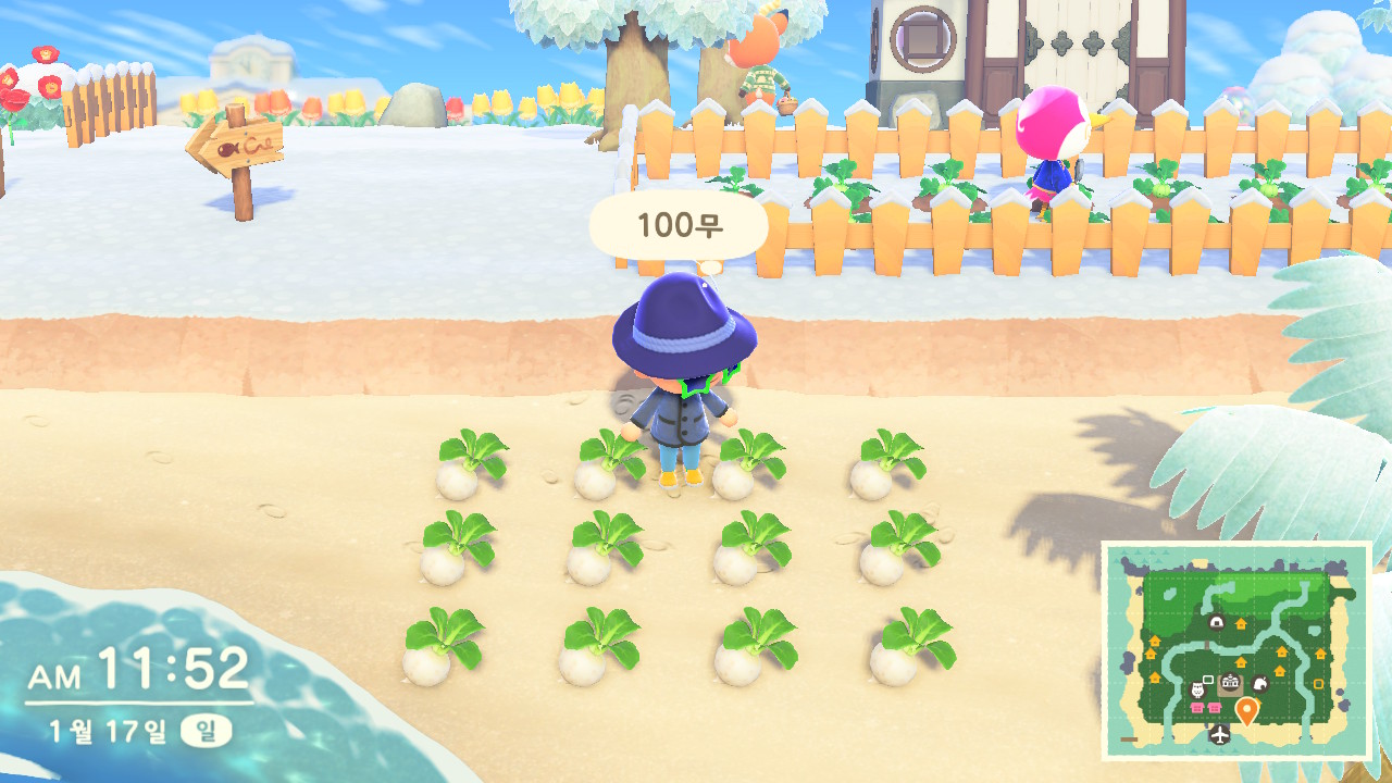 다른사람의 섬에서 무를 사서 왔는데, 내섬이 1월 16일 토요일이라면,