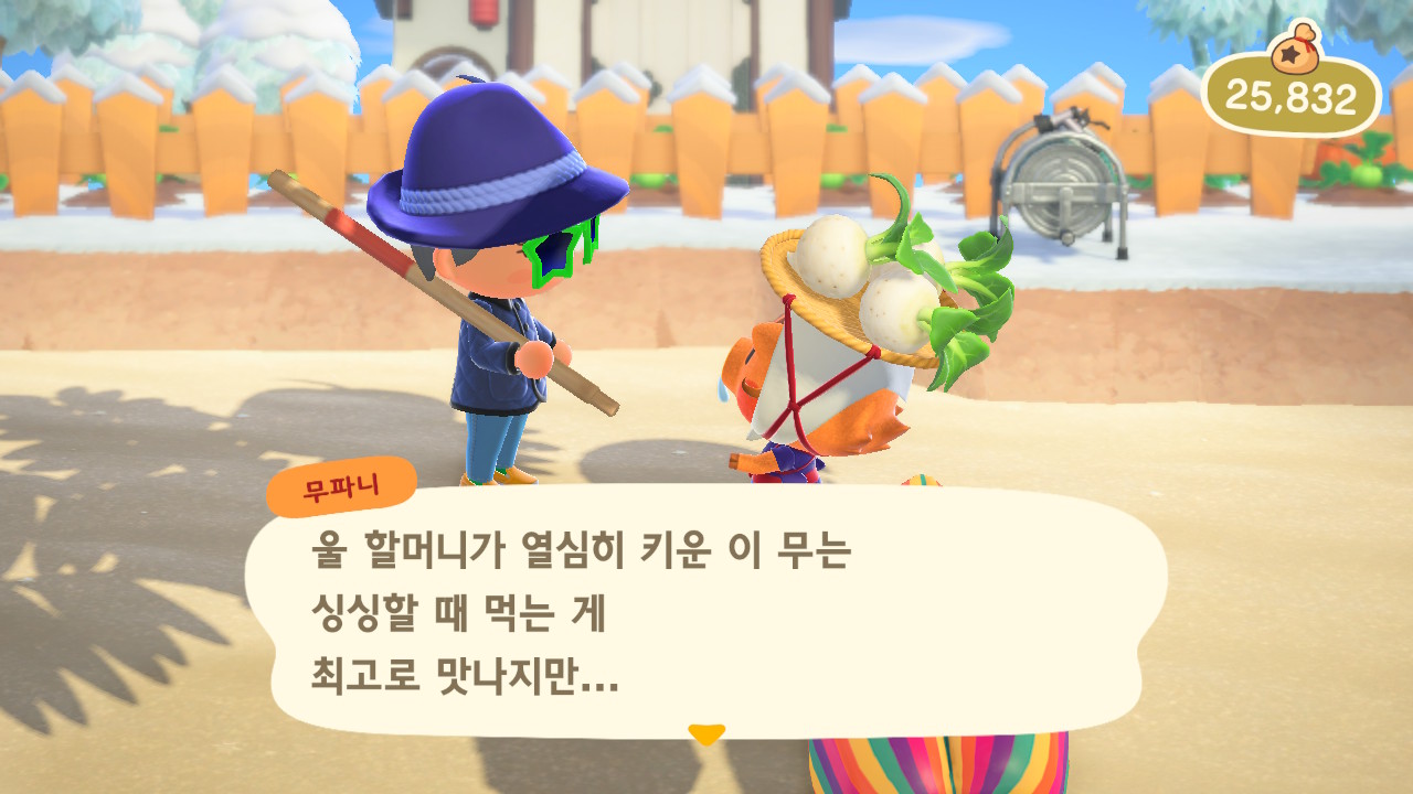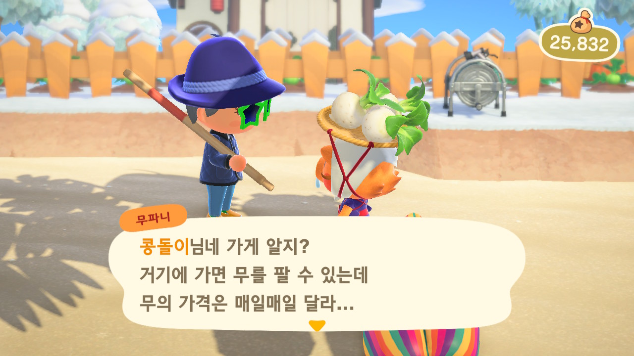 - 타임슬립한 친구의 섬에서 무를 사와도, 내섬의 시간에 영향을 받아요.